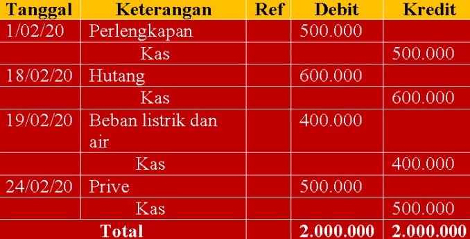 1 Februari 2020 Toko sri rejeki membeli perlengkapan kantor sebesar 500.000